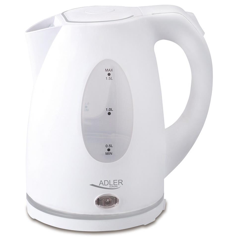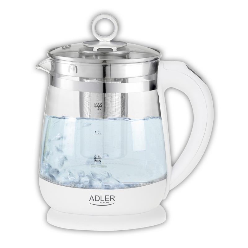 Czajnik elektryczny ADLER AD 1299, 1,5L, z regulacją temperatury i zaparzaczem, szklany, biały