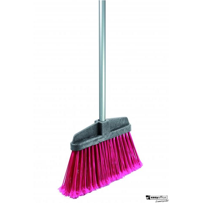 Miotła ogrodowa wykonana z syntetycznego włosia i plastikowej oprawy. Posiada długie, sztywne włókna dodatkowo rozszczepione na końcach, co poprawia skuteczność zamiatania.