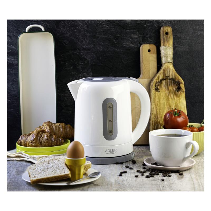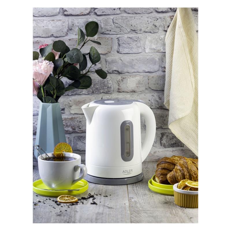 nowoczesny, elektryczny czajnik, pozwalający sprawnie zagotować wodę na herbatę pojemność: 1,7L pojemność min: 0,5 l moc: 2200 W obrotowa podstawa nowoczesne wzornictwo wskaźnik poziomu wody z podziałką filtr zatrzymujący osady wapnia obudowa wykonana z wytrzymałego polipropylenu automatyczne wyłączanie po zagotowaniu wody lampka kontrolna rok gwarancji kolor: biało-szary