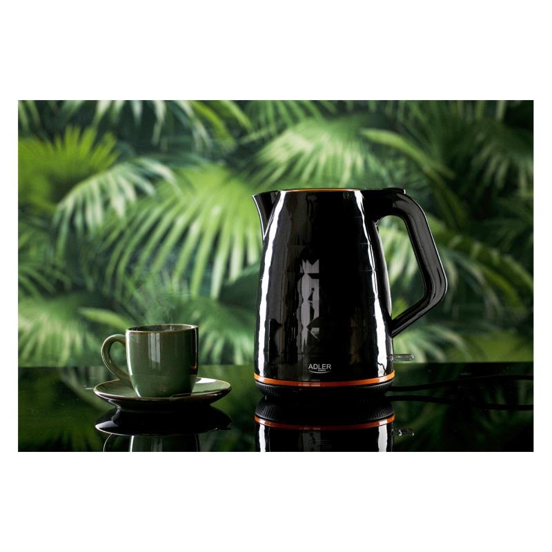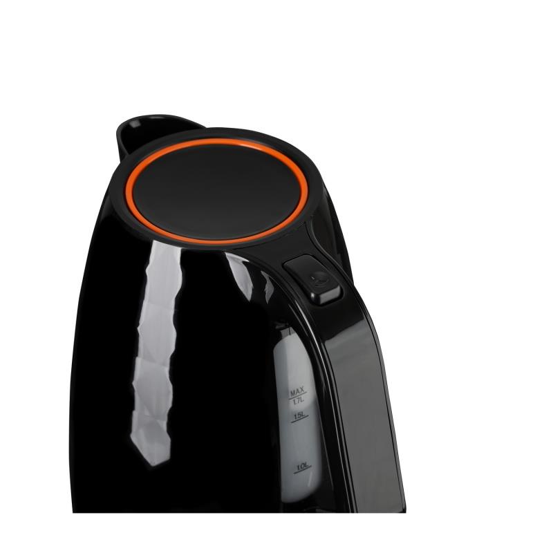 nowoczesny, elektryczny czajnik, pozwalający sprawnie zagotować wodę na herbatę pojemność: 1,7L pojemność min: 1 l moc: 2200 W obrotowa podstawa nowoczesne wzornictwo wskaźnik poziomu wody z podziałką filtr zatrzymujący osady wapnia obudowa wykonana z wytrzymałego polipropylenu automatyczne wyłączanie po zagotowaniu wody lampka kontrolna rok gwarancji kolor: czarny