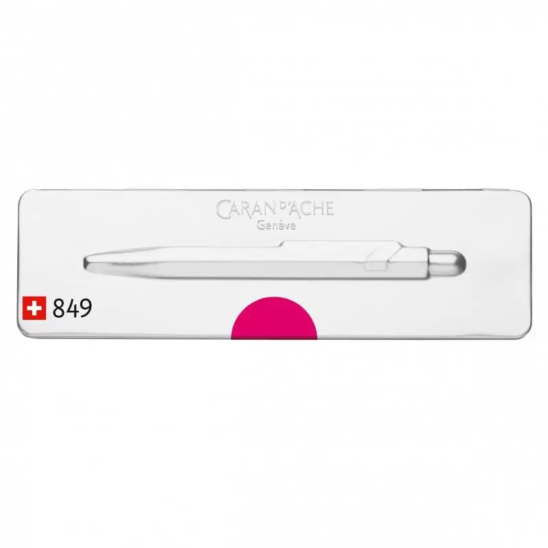 modny, kultowy i ponadczasowy długopis 849 to wizytówka marki Caran d’Ache długopis wykonany z aluminium o sześciokątnym przekroju, idealnie dopasowany do dłoni pokryty metodą malowania proszkowego posiada przyciskowy mechanizm wysuwu wkładu i bardzo solidny klips wyposażony w bardzo pojemny wkład długopisowy Goliath, który pozwoli nam na zapisanie 600 stron A4 do długopisu dołączone jest wyjątkowe, aluminiowe opakowanie wyprodukowany w Szwajcarii kolor: purpurowy