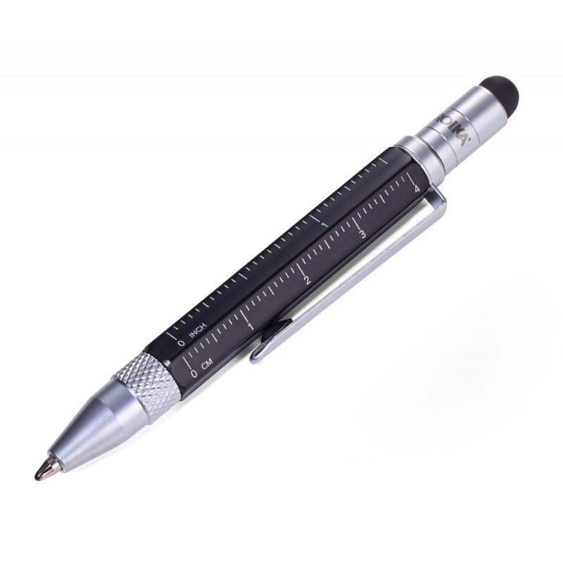 kompaktowy długopis Liliput - mały format, wielkie możliwości zmieści się wszędzie: w kieszeni koszuli, notesie, a nawet w portfelu wielofunkcyjny: linijka w centymetrach i calach, śrubokręt płaski i krzyżakowy, rysik do ekranów dotykowych, wkład w kolorze czarnym + 2 zapasowe wkłady mini organizer i skrzynka narzędziowa w jednym – do notowania, mierzenia, wkręcania i obsługi urządzeń mobilnych klasyczny, ponadczasowy i premium idealny do pracy i na co dzień – zawsze lepiej mieć pod ręką długopis, który potrafi więcej doskonały prezent dla architektów, inżynierów, projektantów i wszystkich, którzy cenią funkcjonalny design grubość linii pisania: 1,0 mm długość linii pisania: 280 m tusz w kolorze czarnym kolor: czarny