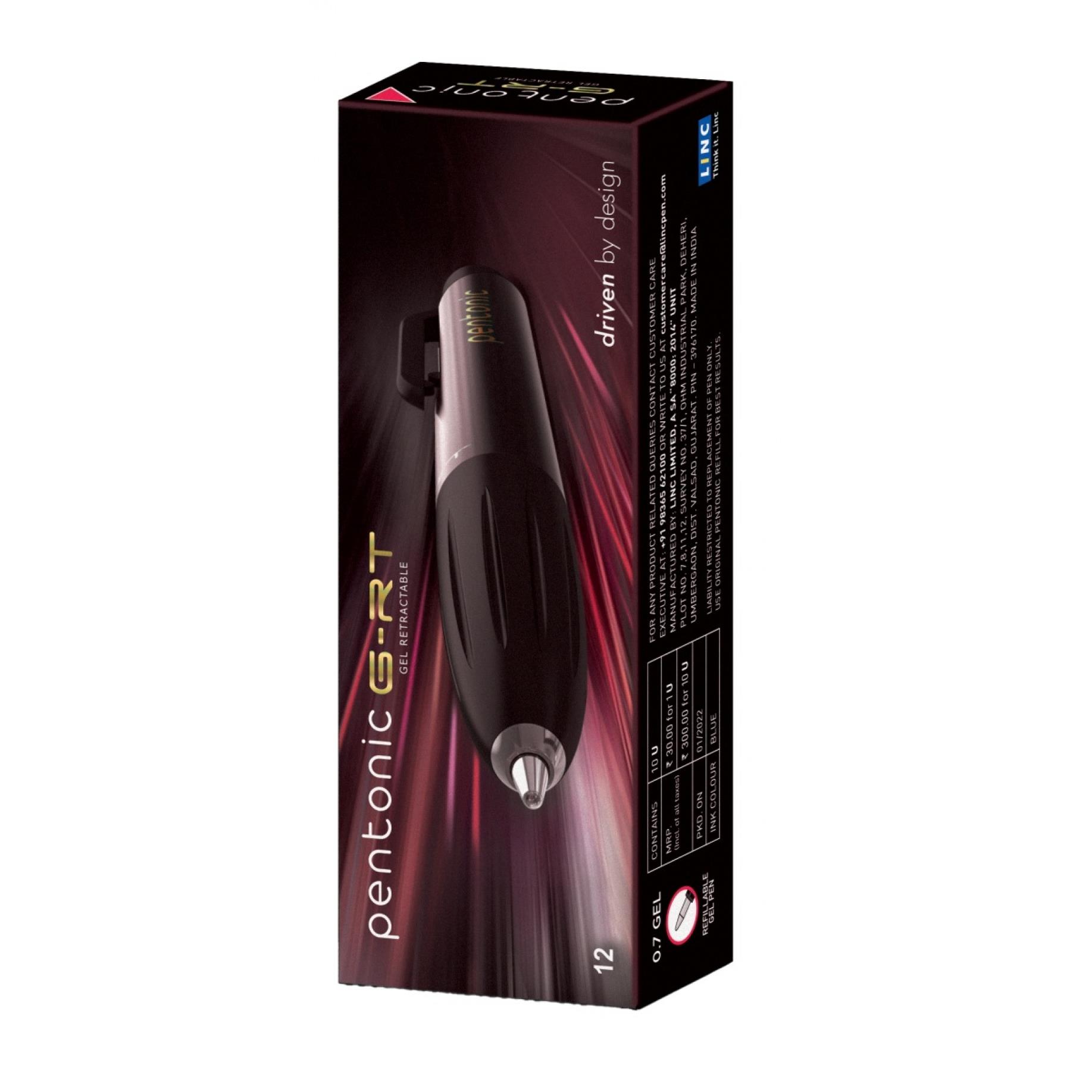 automatyczny długopis żelowy LINC Pentonic GRT łączy dynamiczny, nowoczesny design z technologią Twin Ball, zapewniającą stały, równomierny przepływ tuszu i wyjątkowo szybkie wysychanie (3–5 sekund) tusz o wysokiej wydajności oraz ergonomiczny uchwyt gwarantują komfort pisania nawet przy długim użytkowaniu idealny wybór dla osób, które cenią szybkość, precyzję i nowoczesny styl pisania wymienny wkład TC – kulka z węglika wolframu NS – końcówka z niklu srebrnego wodoodporny tusz okres przydatności tuszu: 1 rok długość linii pisania: 850 m średnica kulki: 0,7 mm kolor obudowy: czarny z metalicznymi akcentami kolor tuszu: czerwony