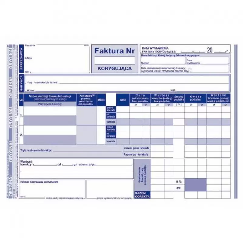 | druk: | jednostronny (oryginał + kopia) |