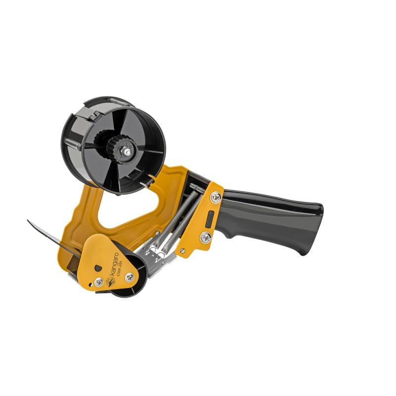 dyspenser do taśm pakowych o szerokości do 50 mm na rdzeniu o średnicy 75 mm metalowa konstrukcja z ergonomicznym plastikowym uchwytem zapewnia pewny chwyt ostrze ze stali nierdzewnej do łatwego odcinania taśmy pokrętło do regulacji naprężenia rolka zapadkowa ułatwiająca podawanie taśmy kolor: żółty