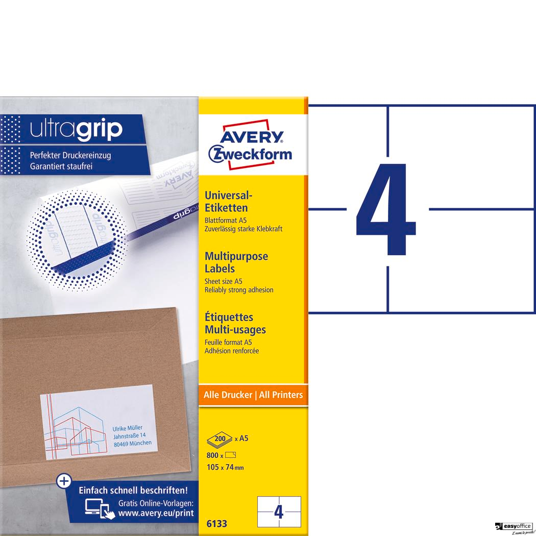 Etykiety uniwersalne 6133 105 x 74 200 ark. A5 Trwałe, Avery Zweckform (X)