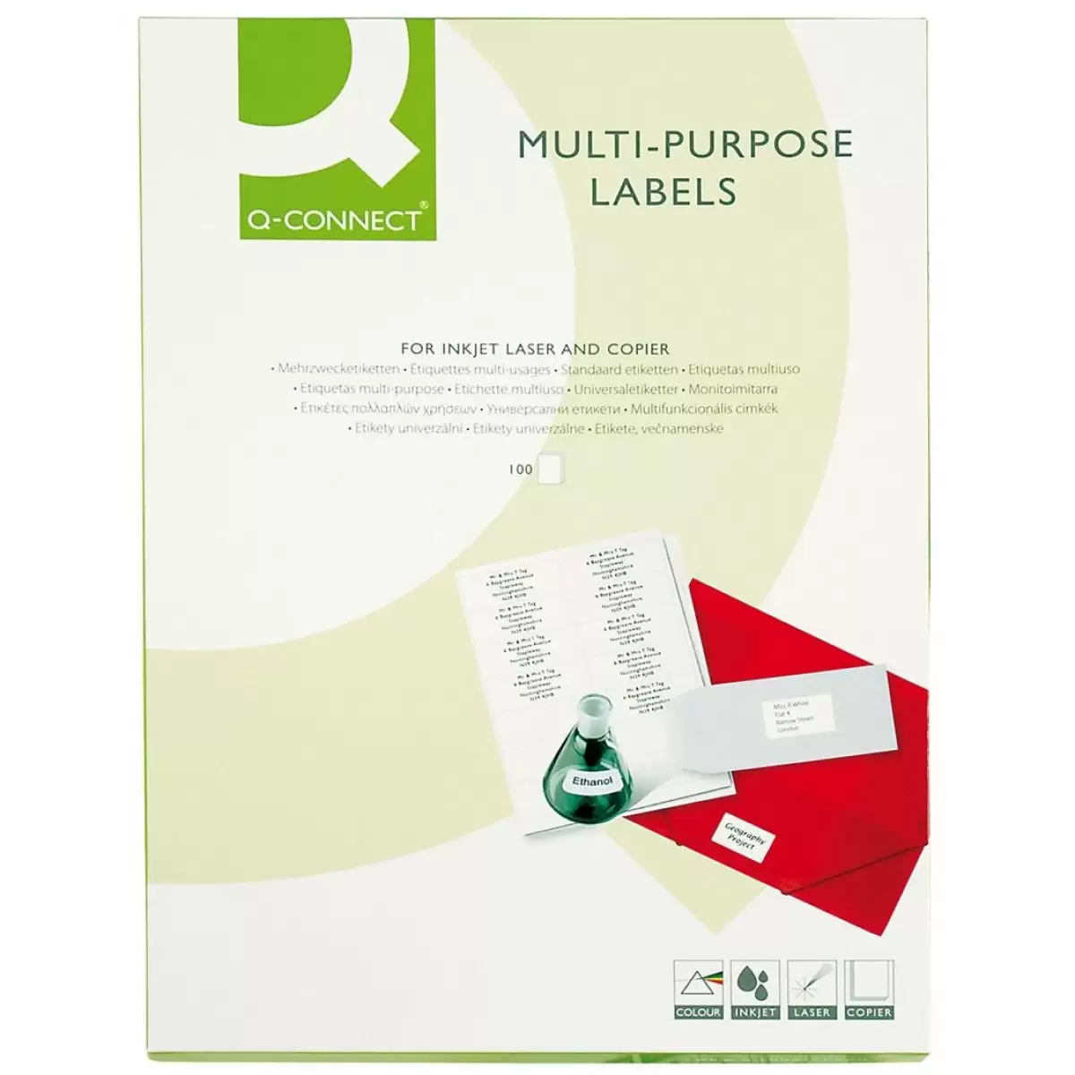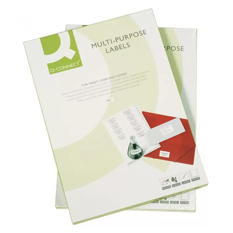 klasyczne etykiety samoprzylepne, odpowiednie do drukarek laserowych, atramentowych i kserokopiarek rozmiar etykiety: 70x32mm liczba etykiet na arkuszu: 27 gramatura: front 70gsm, podkład 55gsm białość: 150 CIE QCT - Quatro Clean Technology - ochronne pole wzdłuż krawędzi etykiety, które zapobiega odkładaniu się kleju na mechanizmie drukarki na tylnej stronie opakowania widok 1:1 rozkładu etykiet na arkuszu możliwość pobrania darmowego programu do projektowania i wydruku etykiet Q-CONNECT SOFT kompatybilny również z oprogramowaniem Windows 7 dostępny na Q-CONNECT.com lub pbspolska.eu 100 arkuszy w j.s. kolor biały
