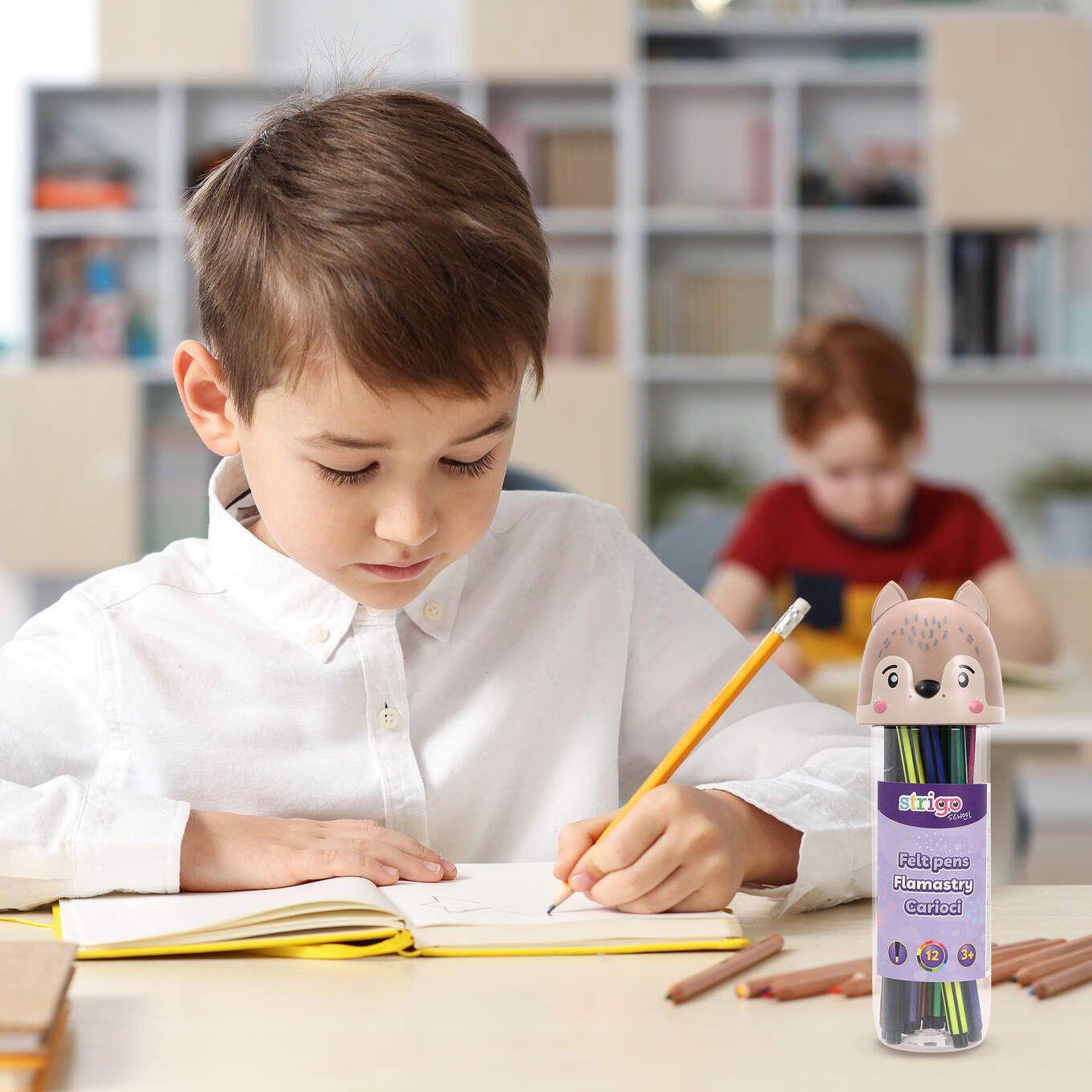 Ten zestaw kolorowych flamastrów Strigo Wilk jest idealny dla dzieci i pasjonatów malowania i kolorowania.