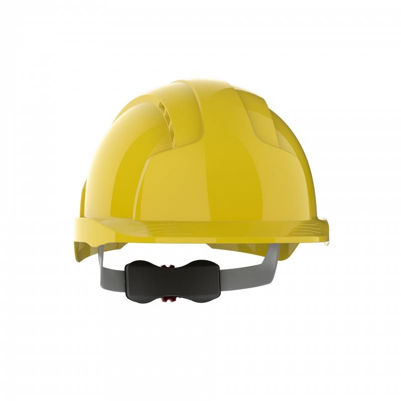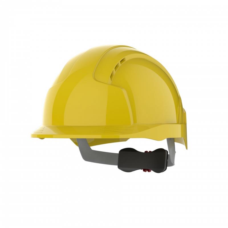 Hełm ochronny zgodny z normą EN 397 dotyczącą hełmów przemysłowych Hełm wentylowany Lekki hełm przeznaczony do pracy w środowisku o niższym ryzyku spadających przedmiotów jak magazyny czy budowa dróg Lekka skorupa wykonana z tworzywa ABS Waży zaledwie 300g (w zależności od modelu i wyposażenia) Komfortowa, 6-punktowa więźba tekstylna 3 punktowa regulacja głębokości więźby Regulacja obwodu pokrętłem Revolution Dwa gniazda boczne do montażu akcesoriów jak ochronniki słuchu czy ochrona wzroku Możliwość nadruków w zależności od ilości zamawianych hełmów Kolor: żółty