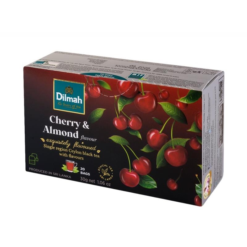rzadko spotykane połączenie słodyczy charakterystycznej dla dojrzałych, bordowych wiśni oraz słodko-gorzkiej nuty migdałowej doskonałe towarzystwo dla wysokogórskiej herbaty cejlońskiej składniki: czarna herbata cejlońska z regionu Udapusselawa (liść BOPF), aromat (6%), naturalny aromat wiśni (0,5%) opakowanie: 20 torebek