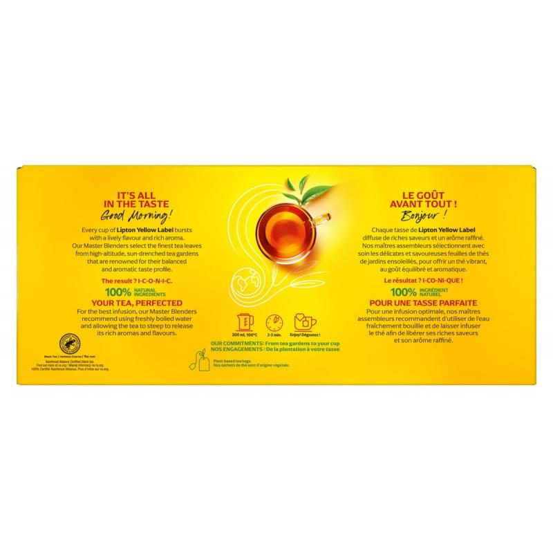 posmakuj słońca w każdej filiżance herbaty Lipton Yellow Label wypełnionej bogactwem smaku i aromatu stworzona ze świeżo zbieranych młodych listków, które dojrzewają w słońcu równikowych ogrodów herbacianych dzięki temu, każda torebka herbaty Lipton jest pełna słońca, któremu zawdzięcza swój niepowtarzalny, zachwycająco świeży smak i bogaty aromat w opakowaniu 400 torebek