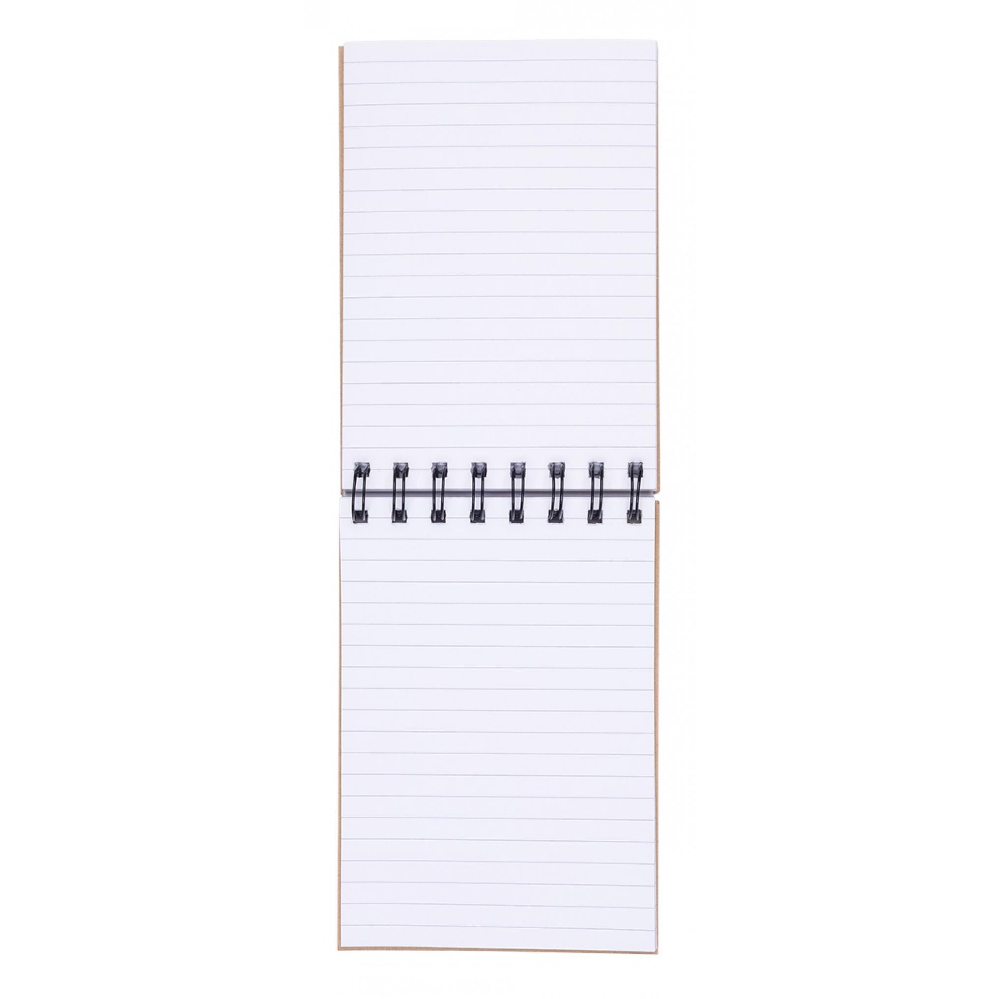 podręczny mini kołonotatnik w linię 7 mm pionowa spirala obustronna, ekologiczna okładka wymiary: 105 x 148 mm format: A6 ilość kartek: 80 gramatura: 80 gsm kolor kartek: biały kolor okładek: brązowy