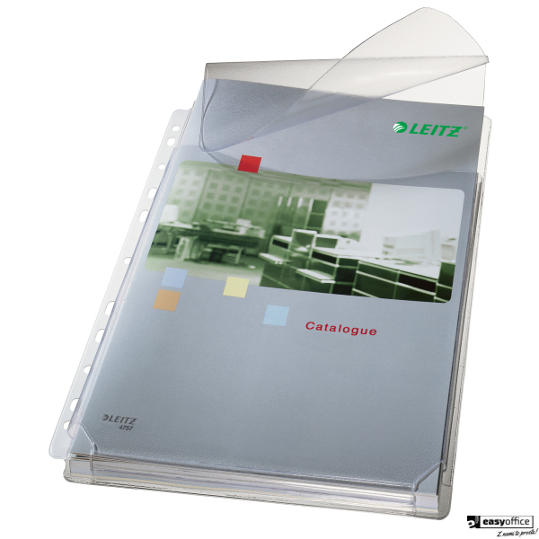 Koszulka A4 na katalogi Leitz_- boczna perforacja umożliwia wpięcie do segregatora_- otwierana z góry_- klapka zabezpiecza dokumenty przed wypadaniem_- grubość folii 170 mic._- multiperforowana - pasuje do każdego segregatora_- z poszerzanymi bokami_- jednostka sprzedaży 1 opakowanie/folia 5 szt