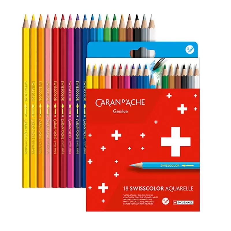 kredki z drewna cedrowego z certyfikatem FSC™, łatwo się temperują miękki, rozpuszczalny w wodzie grafit 2.8 mm 18 jasnych i intensywnych kolorów kredka 2-w-1, sucha lub z efektem akwareli wysoka zawartość pigmentu, ekonomiczne w użyciu pokryte ekologicznym wodnym lakierem dobra odporność na światło zestaw 18 kolorowych kredek umieszczony jest w eleganckim kartonowym pudełku