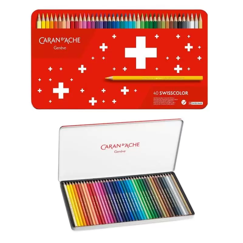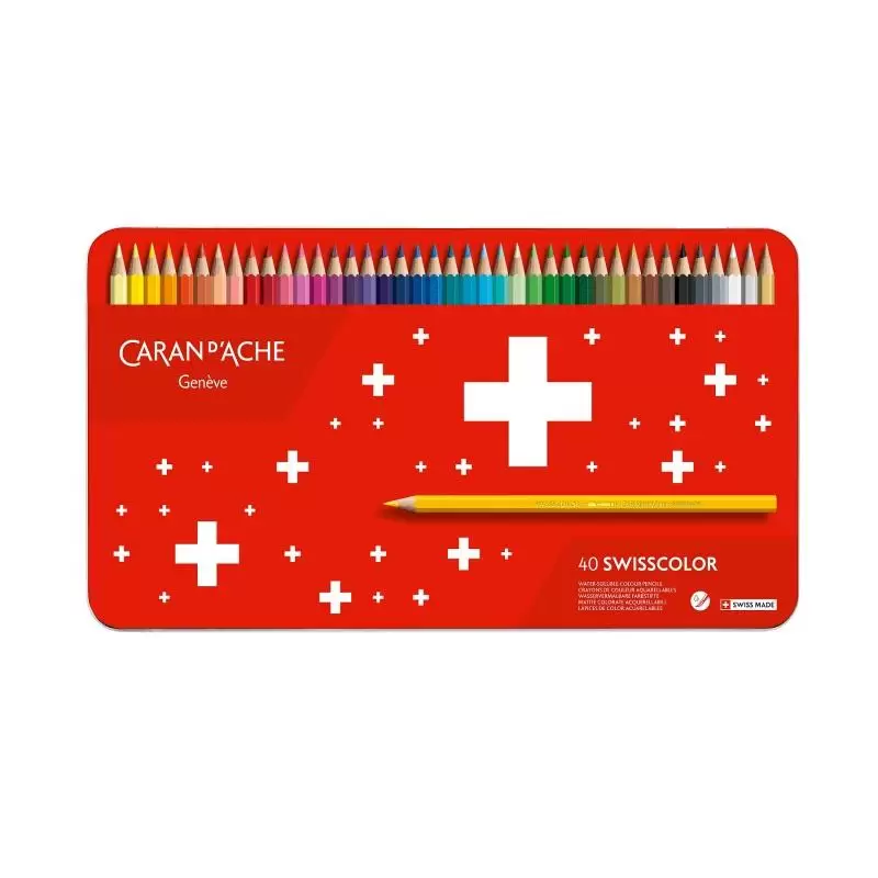 kredki z efektem akwareli kredki z kolekcji Swisscolor wyróżniają się dzięki wyjątkowemu projektowi opakowania intensywne czerwone metalowe pudełko ozdobione jest białymi krzyżami, szwajcarskim godłem poprzez ten „całkowicie szwajcarski produkt” marka Caran d’Ache składa hołd swojemu krajowi i potwierdza przywiązanie do szwajcarskich wartości rozpuszczalne w wodzie, kolorowe kredki Swisscolor zostały starannie wyprodukowane przez rzemieślników z Caran d’Ache w warsztacie w Genewie, niosą sekret stuletniego know-how łączącego jakość i autentyczność pudełka kredek Caran d’Ache Swisscolor są idealne dla miłośników kolorowania i rysowania w każdym wieku doskonały upominek dla szukających typowej pamiątki kojarzonej ze Szwajcarią, która jest jednocześnie ponadczasowa i kolorowa kredki z drewna cedrowego z certyfikatem FSC™, łatwo się temperują miękki, rozpuszczalny w wodzie grafit 2.8 mm kredka 2-w-1, sucha lub z efektem akwareli wysoka zawartość pigmentu, ekonomiczne w użyciu pokryte ekologicznym wodnym lakierem dobra odporność na światło 40 jasnych i intensywnych kolorów kolor: mix kolorów