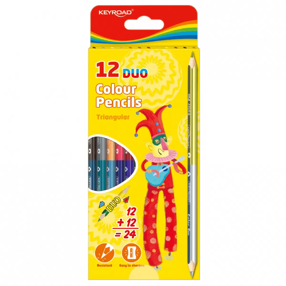 dwustronne, trójkątne kredki ołówkowe idealne do kolorowanek miękki grafit łatwe w temperowaniu 12 kredek, 24 kolory eurozawieszka kolor: mix kolorów