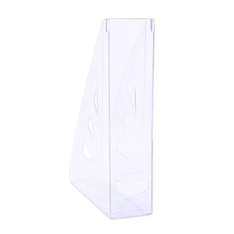 ażurowy pojemnik na dokumenty wykonany z twardego plastiku odporny na pęknięcia sztywna konstrukcja o zwiększonej stabilności ścięte boki ułatwiają wkładanie i wyjmowanie dokumentów wymiary wewnętrzne: 70mm wymiary zewnętrzne: 72mm +/- 1mm kolor: transparentny