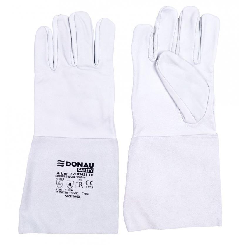 rękawice ochronne spawalnicze do spawania metodą TIG wykonane z bardzo dobrej jakości licowej skóry koziej przeznaczone do prac w przemyśle spawalniczym, energetycznym, metalurgicznym elastyczna, miękka skóra i brak podszewki sprawiają, że sprawdza się przy pracach spawalniczych wymagających precyzji szyte nicią bawełnianą zakończone długim, sztywnym mankietem ze skóry bydlęcej dwoinowej rękawice ochronne chroniące przed uszkodzeniami mechanicznymi rękawice ochronne chroniące przed zagrożeniami termicznymi kat: II zgodność z normami EN 388:2016+A1:2018 (3121X), EN 407:2004 (41XX4X), EN ISO 21420:2020, EN 12477:2001+A1:2005, Typ B materiały: licowa skóra kozia/skóra bydlęca dwoinowa rozmiar: 10/XL kolor: biało-szary