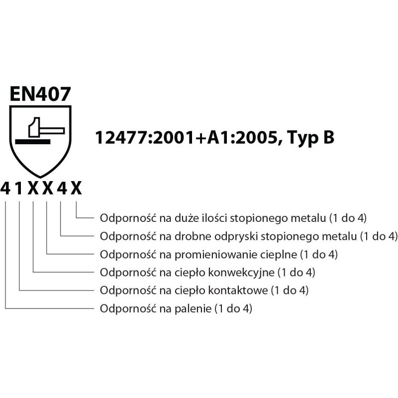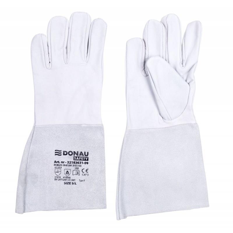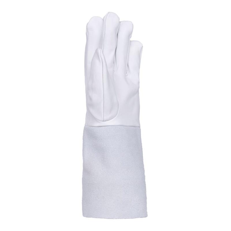 rękawice ochronne spawalnicze do spawania metodą TIG wykonane z bardzo dobrej jakości licowej skóry koziej przeznaczone do prac w przemyśle spawalniczym, energetycznym, metalurgicznym elastyczna, miękka skóra i brak podszewki sprawiają, że sprawdza się przy pracach spawalniczych wymagających precyzji szyte nicią bawełnianą zakończone długim, sztywnym mankietem ze skóry bydlęcej dwoinowej rękawice ochronne chroniące przed uszkodzeniami mechanicznymi rękawice ochronne chroniące przed zagrożeniami termicznymi kat: II zgodność z normami EN 388:2016+A1:2018 (3121X), EN 407:2004 (41XX4X), EN ISO 21420:2020, EN 12477:2001+A1:2005, Typ B materiały: licowa skóra kozia/skóra bydlęca dwoinowa rozmiar: 9/L kolor: biało-szary