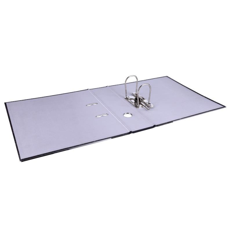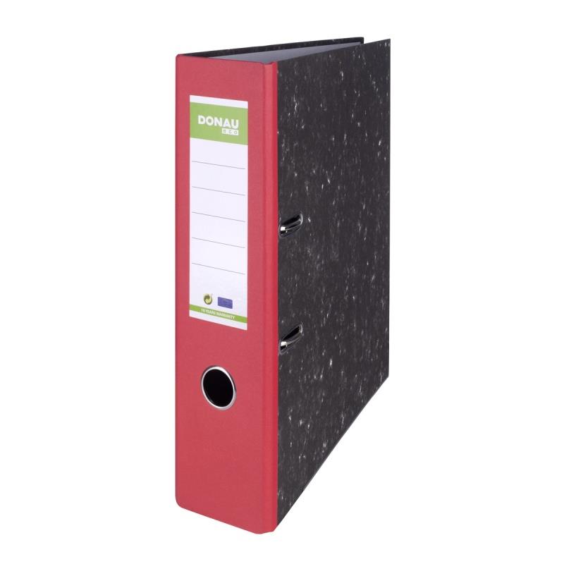 ekonomiczny segregator wykonany z tektury o grubości 2,2mm i gramaturze 1400gsm, wyposażony w dolną listwę wzmacniającą wewnątrz wyklejka papierowa o szarym zabarwieniu dźwignia wysokiej jakości z dociskaczem wzmocniony otwór na palec metalowa listwa wzmacniająca, metalowa dźwignia, mechanizm, okucia i otwór na palec szerokość grzbietu: 80mm wymiary: 80x320x300 mm 5 lat gwarancji na mechanizm dźwigniowy opakowanie 10 szt. kolor: czerwony