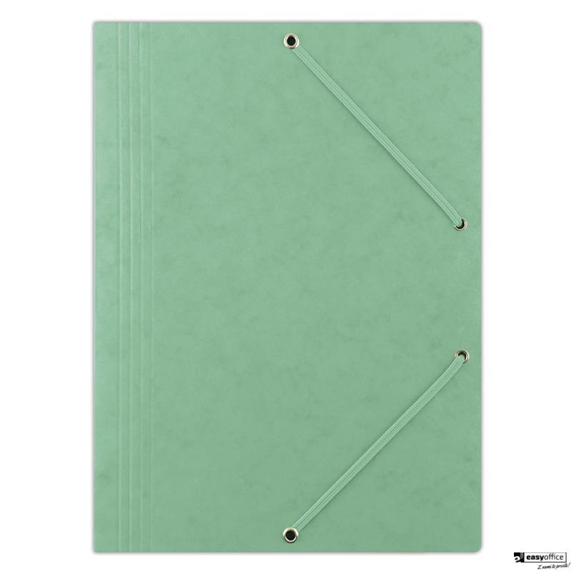 wykonana z kartonu o gramaturze 390gsm, powlekanego woskiem_posiada Zielony Punkt (Der Gr_ne Punkt) - udział w systemie recyklingu i odzysku odpadów wynikający z przepisów prawa polskiego i UE_3-skrzydłowa_preszpanowa_zamykana za pomocą 2 płaskich, narożnych gumek w kolorze teczki_format: A4_rozmiar: 235x319mm_kolor zielony