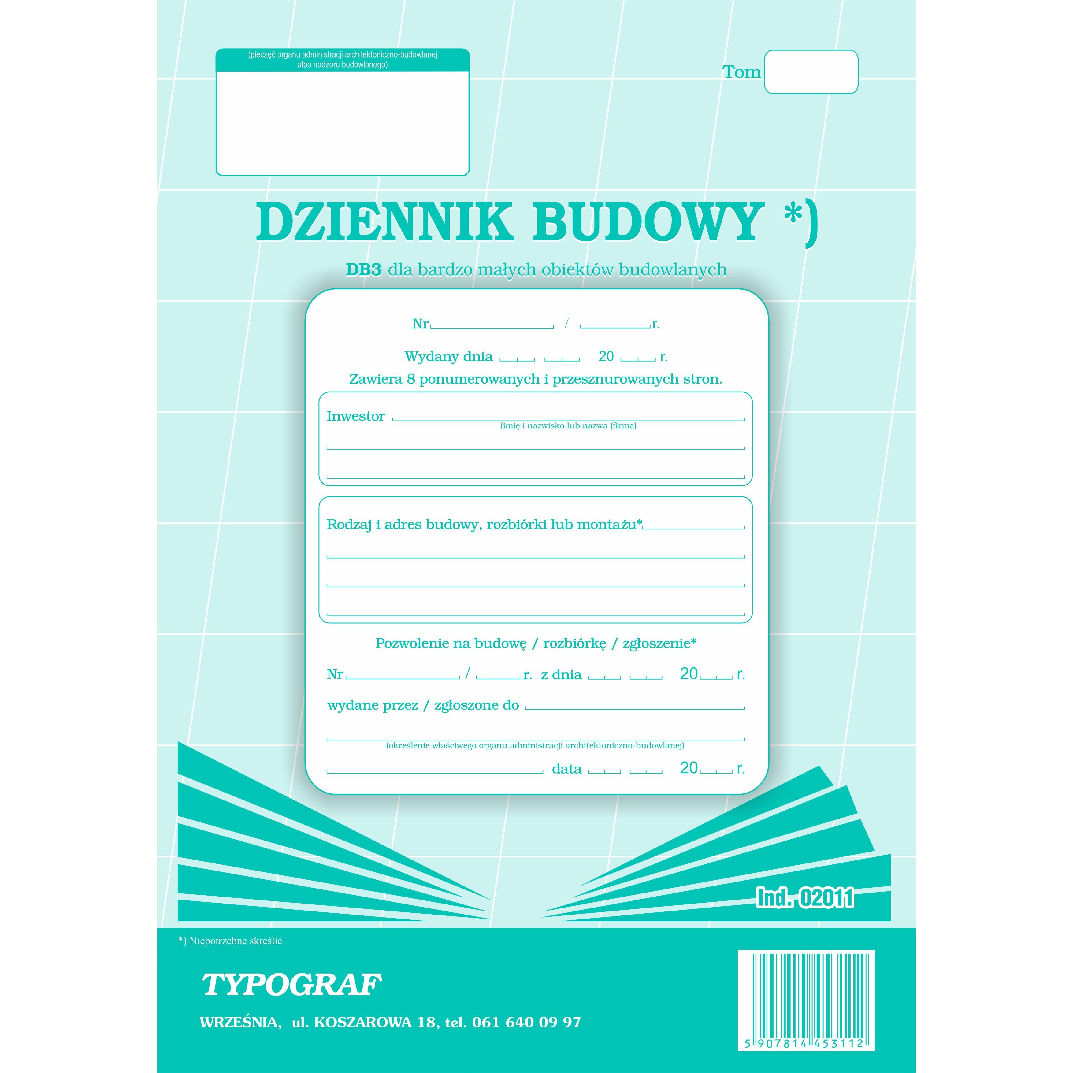 Druk Dziennik Budowy A4 TYPOGRAF 20k