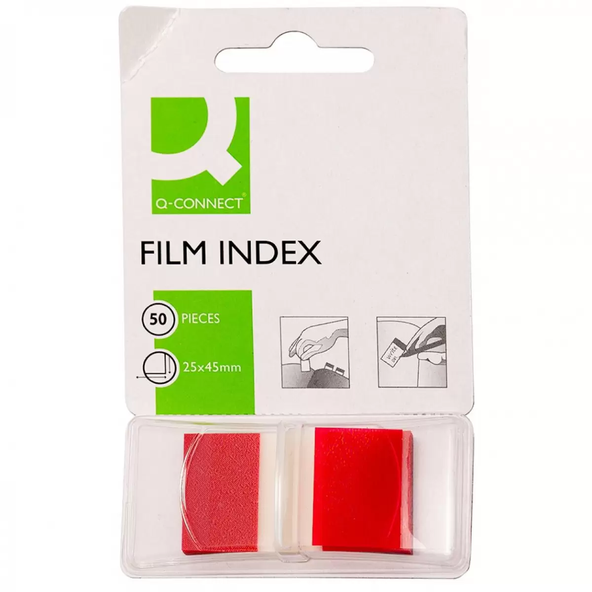 zakładki indeksujące, do zastosowania w pracy, szkole i domu ilość zakładek: 50 w rozmiarze 25,4x43,7mm wykonane z folii PP umożliwiają zaznaczanie stron klej usuwalny za pomocą wody kolor: czerwony