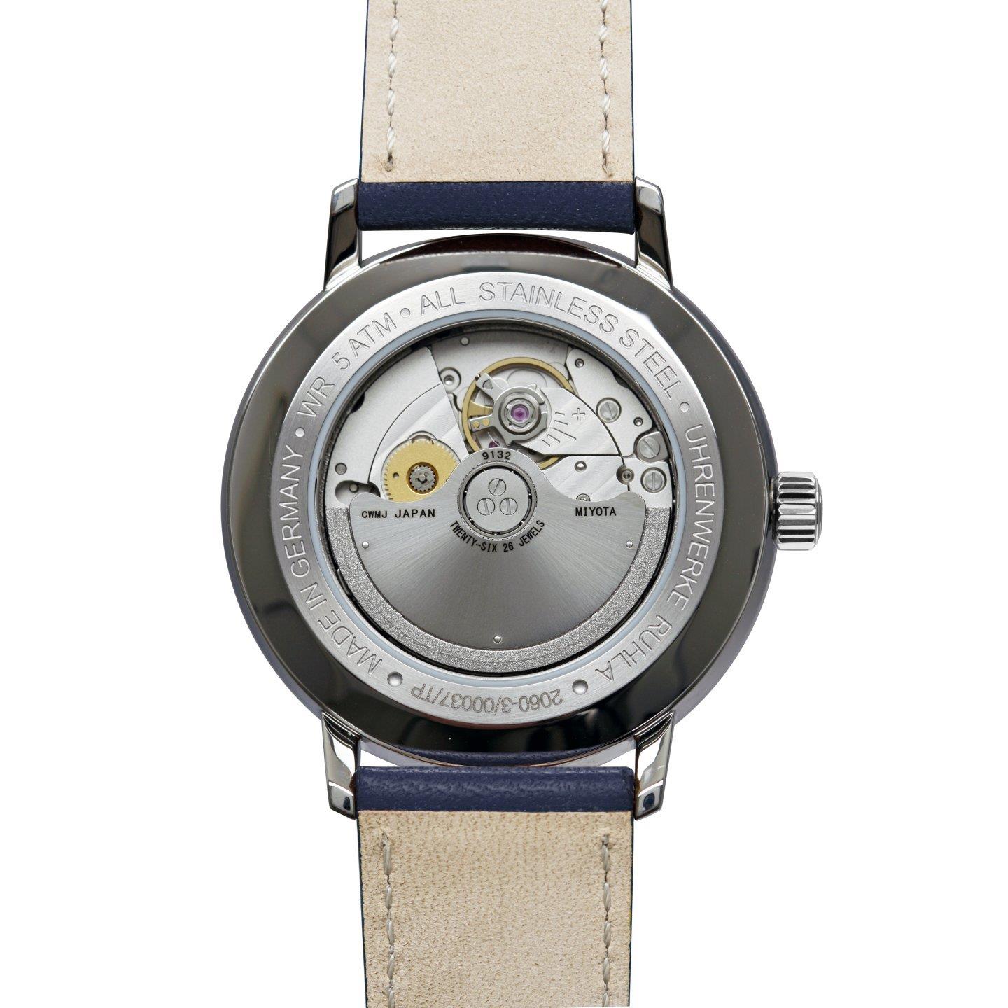 Miyota 9132, rezerwa chodu, szkło mineralne K1, dekiel ze szkłem mineralnym, tarcza granatowa, wskazówki srebrne, koperta ze stali nierdzewnej, średnica 41 mm, wysokość 12 mm, masa ok. 62 g, WR 5 ATM, pasek skórzany 20mm