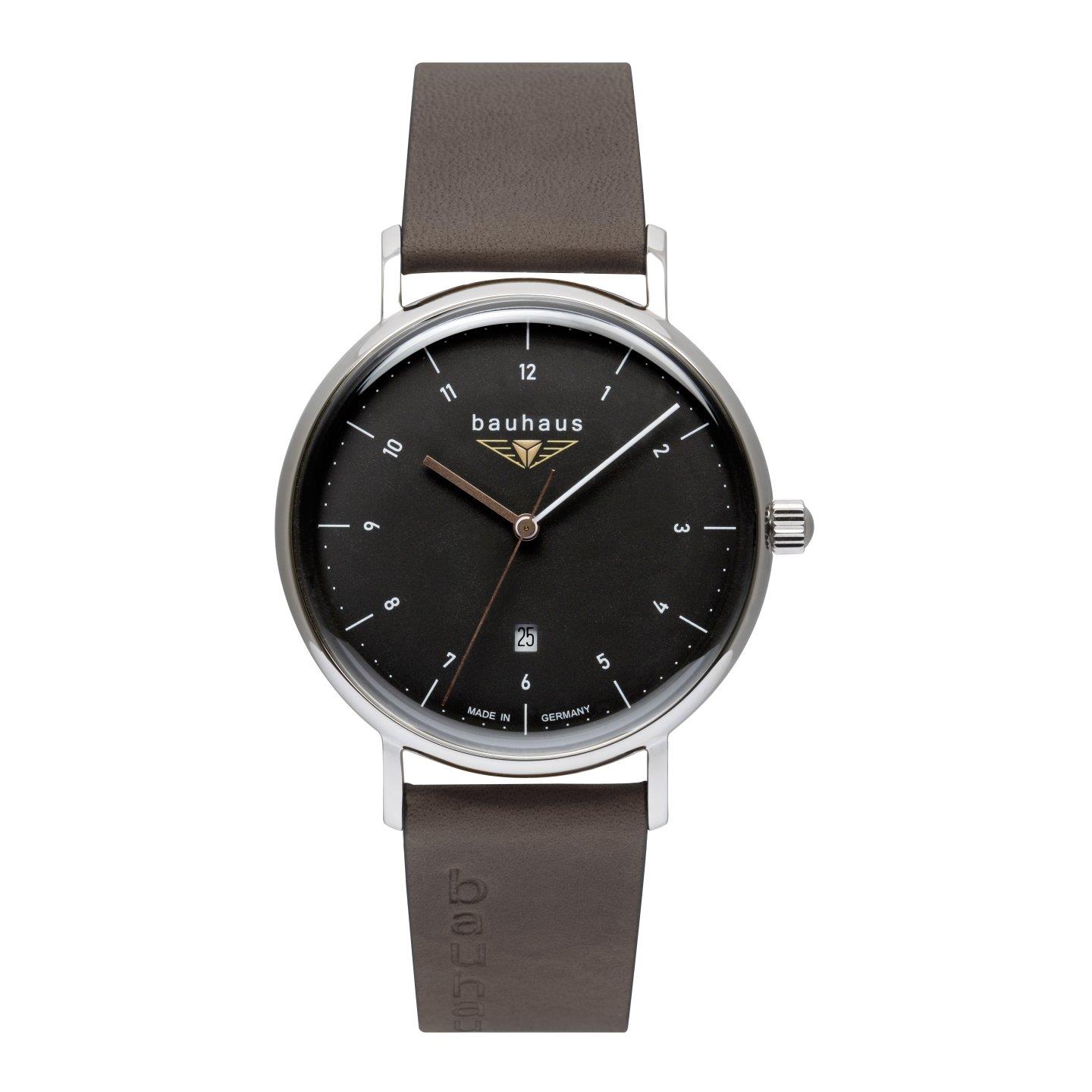 Ronda 505, koperta ze stali nierdzewnej, utwardzane szkło mineralne K1, tarcza antracytowa, średnica 41 mm, wysokość 10 mm, waga 53 g, WR 5 ATM, pasek skórzany