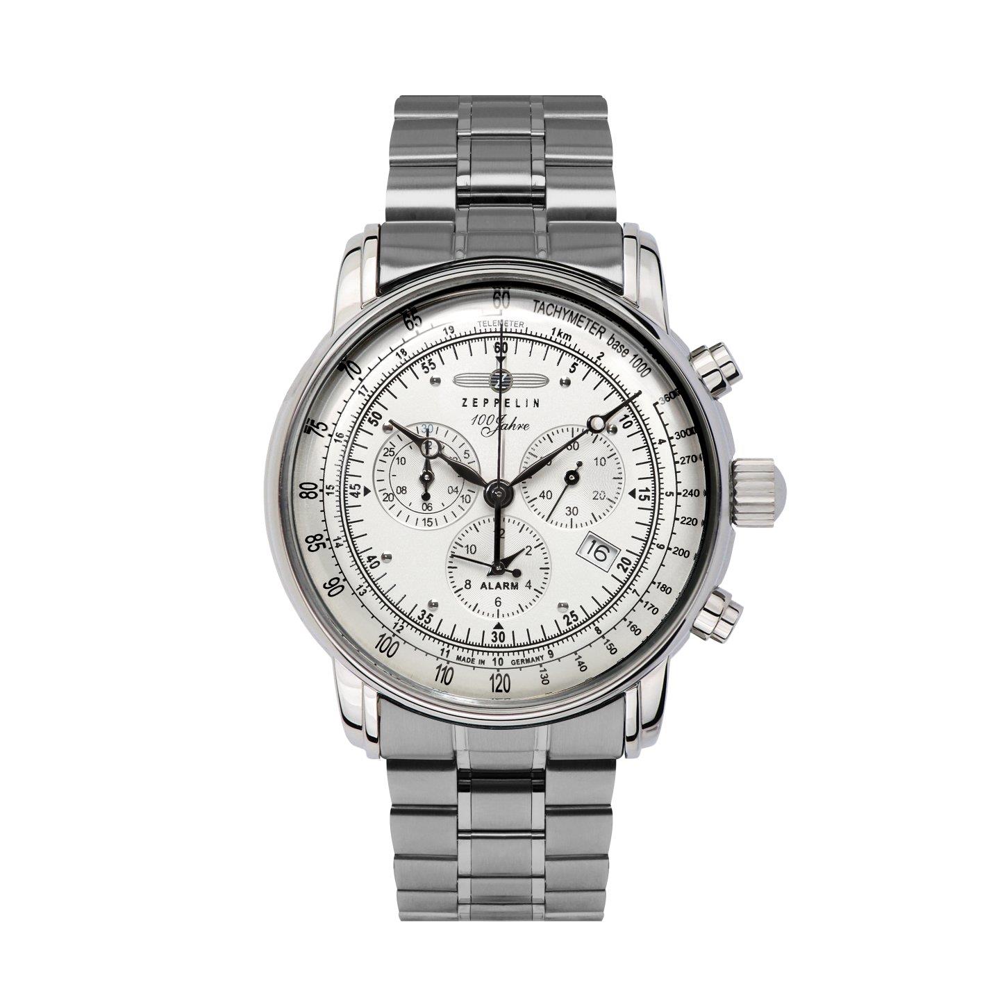Ronda 5130.D, tarcza srebrna, szkło mineralne K1, średnica 42 mm, wysokość 13 mm, dekiel stalowy, koperta stalowa, bransoleta stalowa, WR 5ATM, chronograf, alarm, datownik