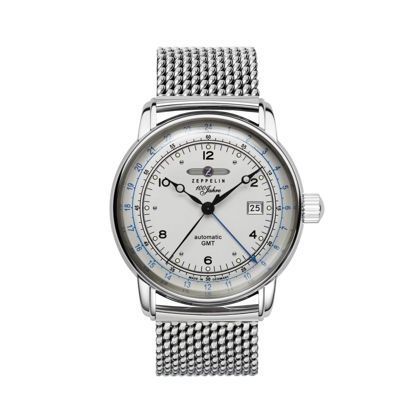 Miyota 9075, tarcza srebrna, średnica 43 mm, szkło mineralne K1, koperta stalowa, dekiel stalowy, wskazówka GMT, WR 5 ATM, bransoleta stalowa typu Diver, datownik