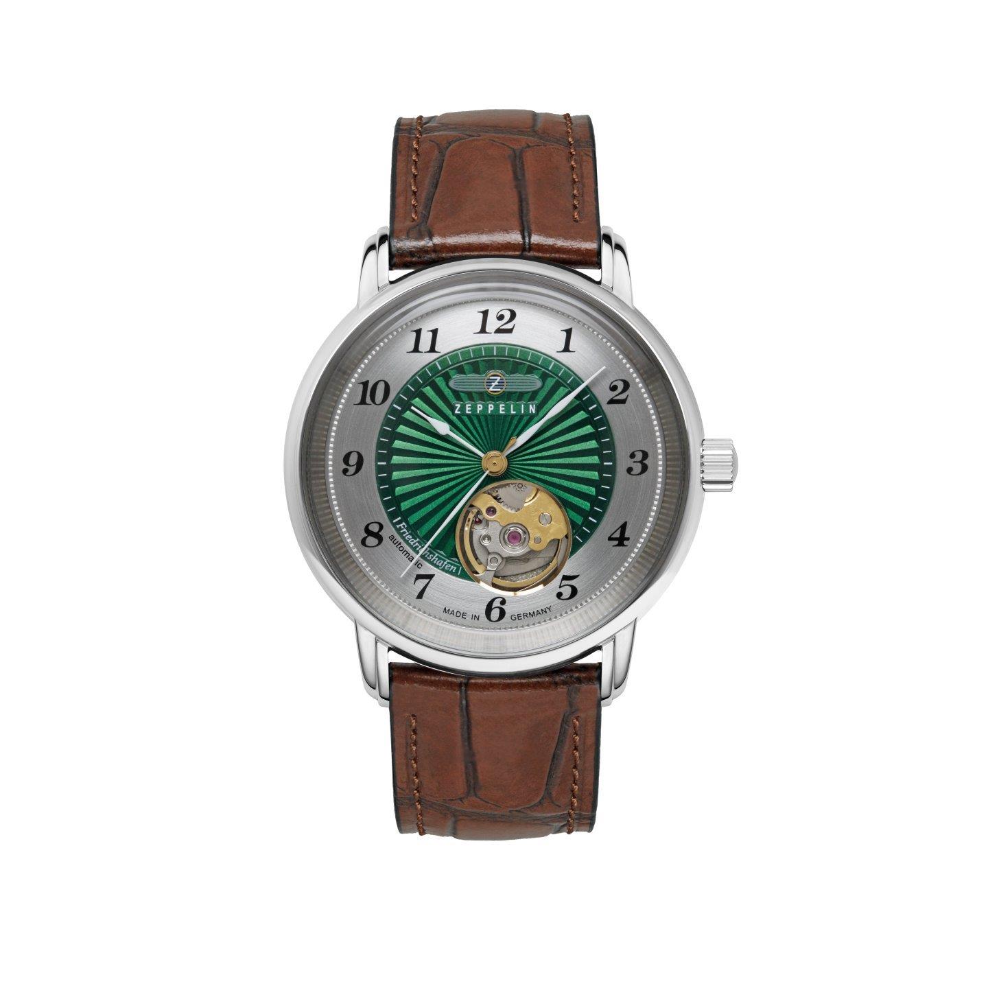 Miyota 90S5, tarcza srebrna ze zdobieniem "Clus de Paris", szkło mineralne K1, średnica 36 mm, wysokość 11 mm, dekiel ze szkłem mineralnym, koperta stalowa, pasek skórzany 18mm, WR 5ATM, otwarte serce