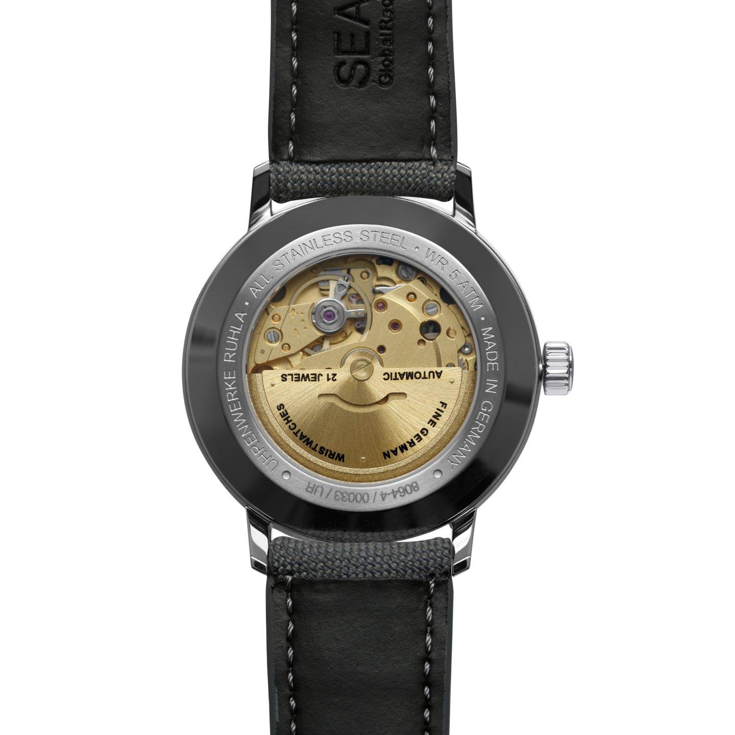 Miyota 8215, tarcza czerwona, bioceramiczna, średnica 41 mm, szkło mineralne K1, koperta stalowa, dekiel stalowy, WR 5 ATM, pasek wegański