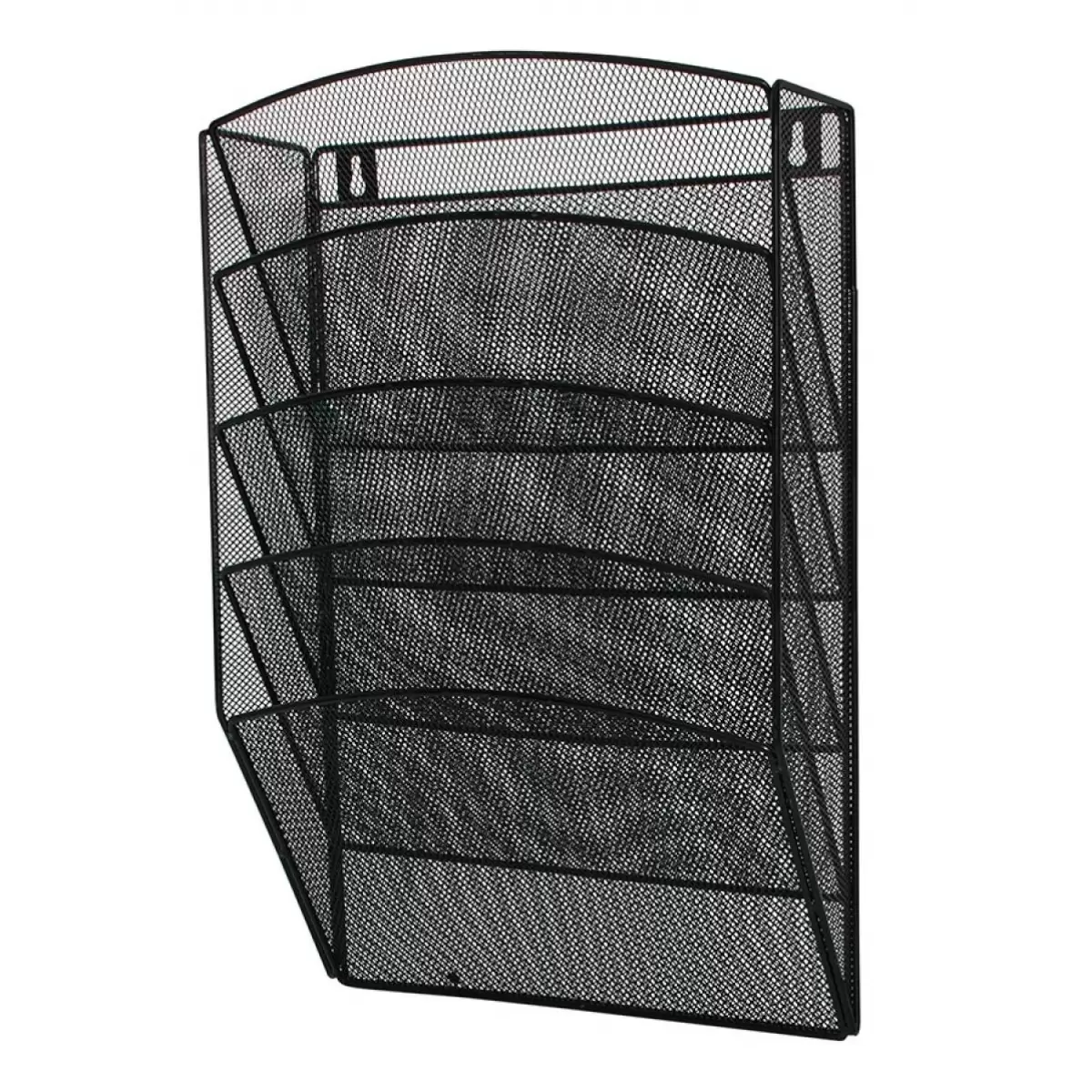 zestaw metalowych półek na dokumenty, korespondencję, czasopisma, wykonany z metalowej siateczki na tylnej ściance dwa dedykowane otwory do mocowania na ścianie w komplecie zestaw mocujący do ściany wymiary: 315x440x120mm kolor czarny