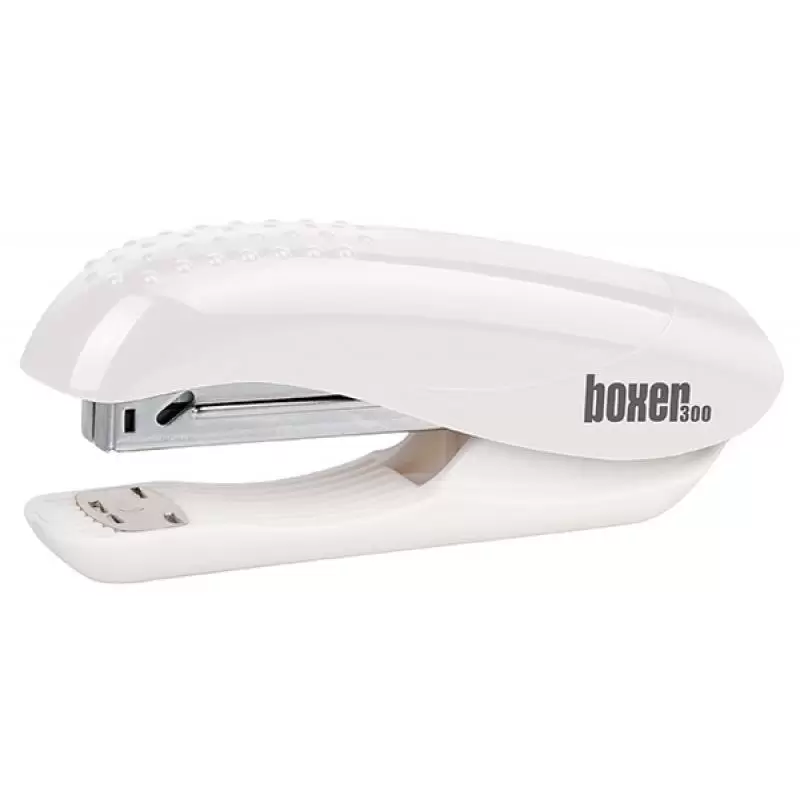 metalowy mechanizm, plastikowe ramię i podstawa o wysokiej wytrzymałości na szczycie ramienia wypukły wzór zwiększający pewność uchwytu posiada funkcję zszywania tapicerskiego, zamkniętego i otwartego otwiera się na 180' na podstawie podane rodzaje zszywek podstawa w kolorze białym posiada wskaźnik poziomu zszywek zdolność zszywania: do 20 kartek głębokość wsunięcia kartki: 55mm zszywki: 24/6, 26/6 gwarancja 10 lat kolor: biały