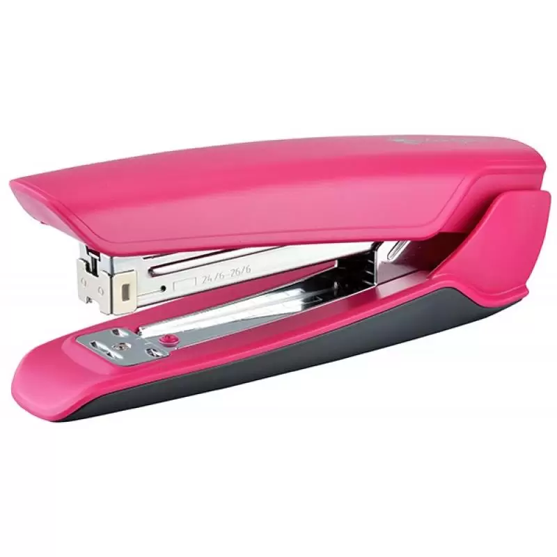 metalowy mechanizm, plastikowy korpus wykonany z wytrzymałego i trwałego tworzywa sztucznego, podstawa o długości 144 mm zszywanie: otwarte, zamknięte oraz tapicerskie wbudowany rozszywacz z uchwytem na zszywki wskaźnik zużycia zszywek zszywki: 24/6 lub 26/6 pojemność: 100 lub 150 zszywek zszywa: do 30 kartek głębokość wsunięcia kartki: 70 mm 10 lat gwarancji na ramieniu nadrukowana nazwa i logo producenta, na podstawie nadrukowana nazwa i logo producenta, model oraz rozmiar zszywek w podstawie dwa antypoślizgowe elementy kolor: różowy